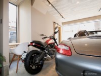 自転車や車、バイク、模型、サーフボードのメンテナンスはもちろんのこと、ワークスペースや作業場としてもお使いいただけます。床はタイル仕上げとなっていますので、単なるガレージではなく趣味のお部屋としてお使いいただけます。