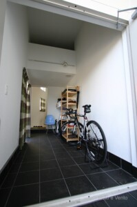 長さが約4mもあるガレージ。ウィンドサーフィンのポールや、カヤック、サーフィンのロングボードも収納可能です。
