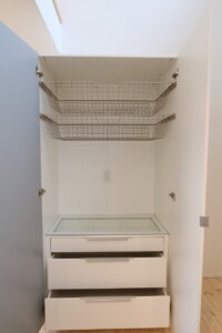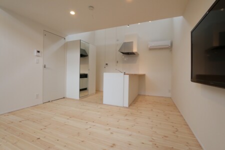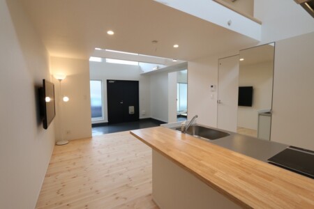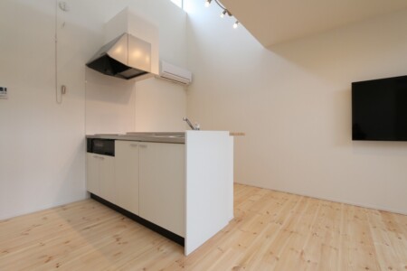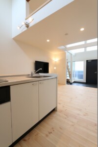 LDKには大型のモニターが壁付けされていますので、お好きなシネマを楽しむこともできますし、DOMAに置いたバイクやロードサイクル、サーフボードなどお気に入りのアイテムを眺めるリアルシアターとしても楽しめます。