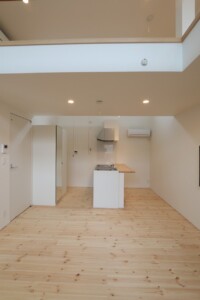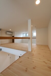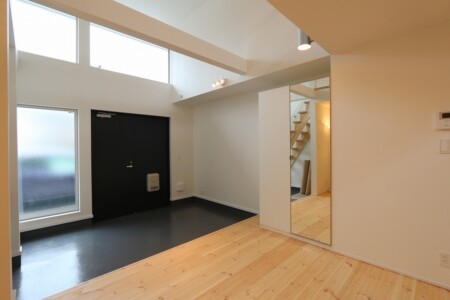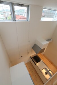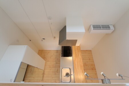 3m以上の開放的な吹き抜けには大きな高窓があり、明るい日差しが降り注ぎ、部屋にはブリッジ上のロフトがあります。寝室や読書スペースとして活用いただくことを想定してデザインされています。