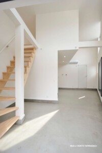 南側に面した天井高 3.3mの吹き抜けには大きな高窓があり、太陽の光が明るく差し込みますので、とても開放的なお部屋です。IKEAのクローゼットや照明、ミラーも標準装備。デザイナーズアパートならではのスタイリッシュなリビングルームです。