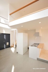 リビングは巨大な土間ルームです。カフェバーの様なライフスタイルを味わって下さい。広さは約12畳とたっぷり。住むほどに自分のライフスタイルに馴染む住み心地の良い部屋です。