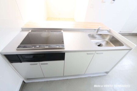 キッチンは、分譲マンション並み1,800mmサイズのカウンター式。3口のIHコンロ仕様です。