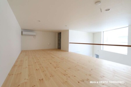 ロフトは9.7畳の広さがあります。収納だけではなく、ロフトルームとして書斎、寝室など幅広くご活用下さい。(エアコン完備)
