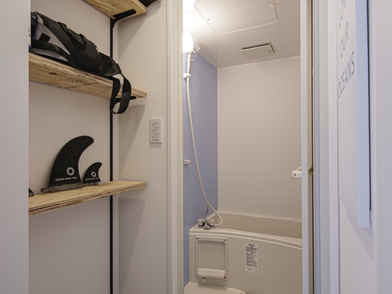 エントランス横には、海帰りにサッと体を洗える屋外シャワーやマリングッズを完備。